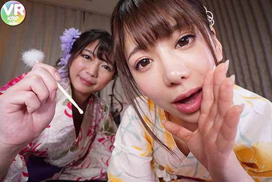 有村のぞみチャンと泉ひなのチャンの2大超絶美女がVRで耳かきエステ!耳の中を優しくかきかき&ナメナメしてもらいチ●ポがむくむく…。手コキで竿や金玉をほぐしてもらいフェラチオで亀頭を舐めまわされ射精寸前!フェラされながら手マンをすると2人も甘い声でヨガリまくり!耳の穴をほじってもらったお礼に女の穴をチ●ポでほじりまくれ!セックスもできる耳かきエステはKMP VR-bibi-で!!
