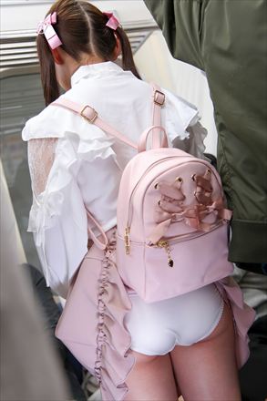 混雑する電車内でハプニング捲れパンチラを目撃した男は鞄で隠シコ!しかし隣の女にバレてしまい「怒られるかと思いきや「続きしなよw」とセンズリ鑑賞や手コキをしてくれて良い子かと思いきや捲れパンチラ女と友達で2人から責められる展開に!?弱みを握られた男は車内でチンポ弄りやフェラで抜かれ‥人気のいない所に移動してお仕置き3P