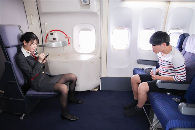 うぶな男の子に冗談半分の挑発パンチラしたら超暴走! 仕方なく射精させてあげても勃起は治まらず追いかけられて機内の死角でハメられまくる美人CA