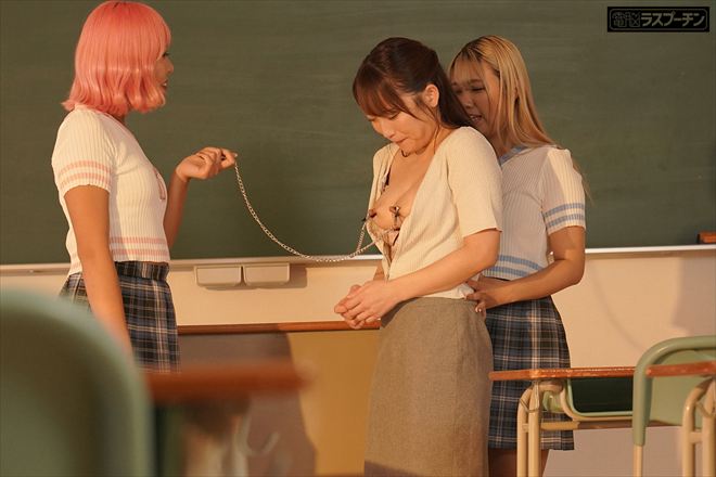校内でのレズ行為を見られてしまったギャル生徒2人注意してきた女○○に逆キレして羽交い○めにしブラジャーを剥ぎ取ると、とんでもない爆乳がボロンッ!おっぱいに興味津々のレズ生徒2人は女○○を羽交い○めにして執拗な乳首責め!コリコリ ペロペロ チュパチュパ 快楽乳首○○で2人のレズペットに成り下がる女○○!乳首ローターを着けたまま図書室徘徊!乳首リードで○○散歩!最後はペニバンレズセで3人ともイキまくり!