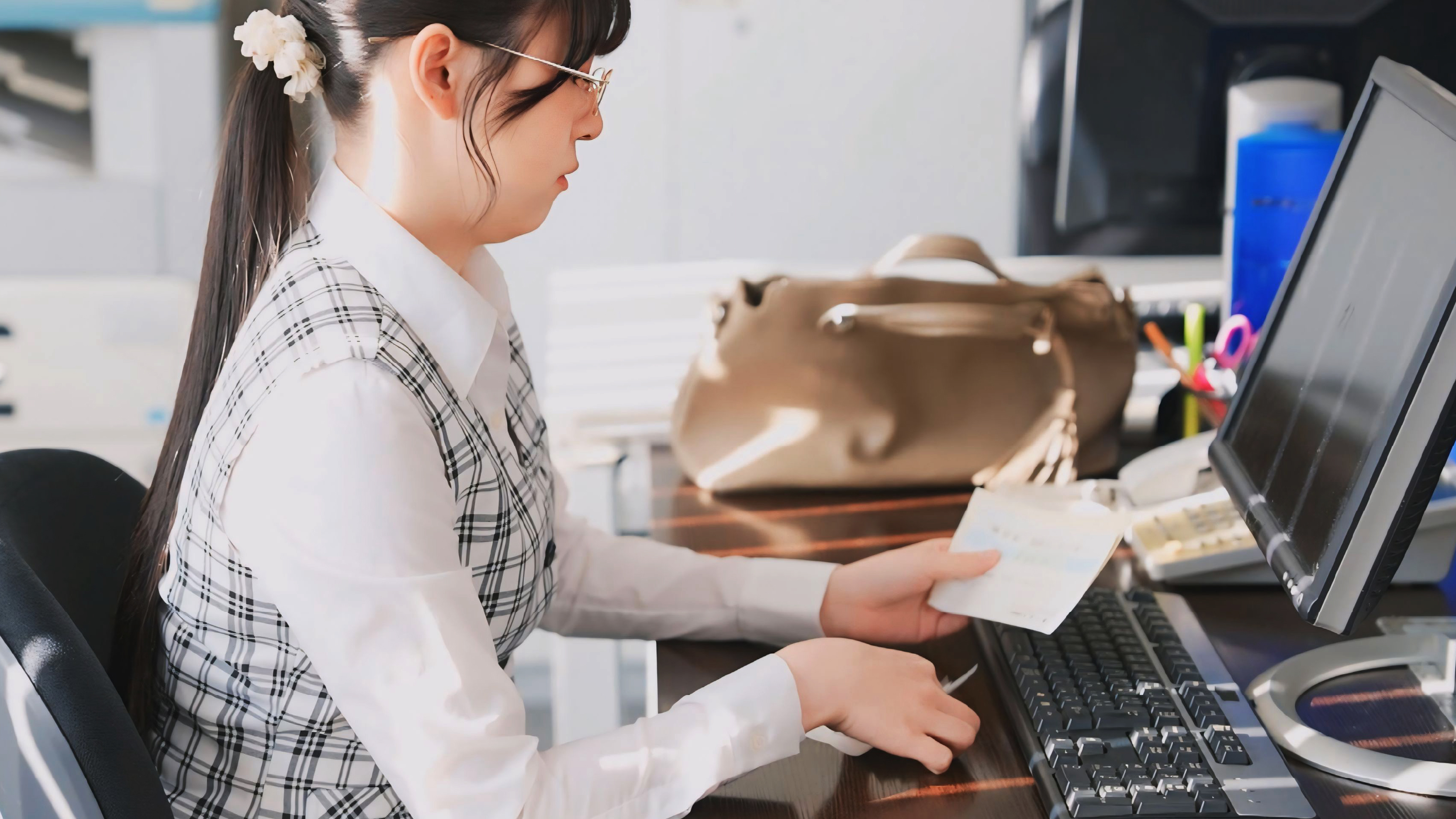 「この領収書は何ですか?」いつも怪しい領収書を突き返してくる生真面目で厳しい経理部の地味子がデリヘル嬢としてホテルにやってきた!「よりによって、なんで会社の人なの・・・仕事ですから。お金も貰うしヤルことはヤリますから」お嬢としてのサービスが終わった後に僕は会社への口止め料代わり生本番を要求したら「分かりました。でも絶対、外に出してくださいね」中出しまでしちゃったので調子に乗ってデリヘル代金の領収書を出したら「これは経費じゃ落ちません!」やっぱり彼女は生真面目な経理部の地味子だった。