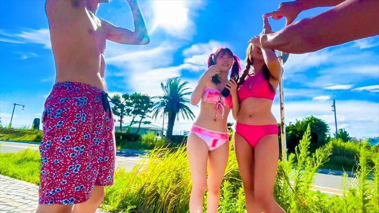 今年も真夏の海で水着ナンパ!写真モデルをお願いします!と水着ギャル2人組に声を掛けるが警戒される→飲みならいいとのことなのでお酒を奢って和む。色白美肌の童顔キャバ嬢【ゆーみちゃん(20歳)】。コンカフェも掛け持ちしていてセフレ持ち(7人)。犬系男子に弱いらしい。個室で撮影会&ギャラ飲みまで漕ぎつけてヤリ部屋へ搬送→私服で飲み→撮影会なので水着に着替えてもらう→撮影会→盛り上がったところで高額謝礼でAV出演を持ちかける→友達を別部屋に連れ出して2人きりに。セフレが7人もいるだけあって性欲が強くキスするとスイッチON!パイ揉み→水着の上から乳首責め→美乳乳首舐め→下を脱がしてパイパン判明→クンニ→クリ責め→手マン(軽イキ)→手マン(潮吹き)→フェラ→乳首舐め手コキ。ビンビンになったので正常位で挿入!おま●こキツくてめっちゃ気持ち良い!ソファで背面騎乗位→立ちバックでハメ潮を撒き散らす!気持ち良さそうに恍惚の表情を浮かべて自らの腰を打ちつける杭打ち騎乗位も良きwwバック→正常位でピストンしてると締まり良過ぎて思わず中出し!気持ち良いから更に連続で2回目の中出ししたらブチ切れられちゃったww