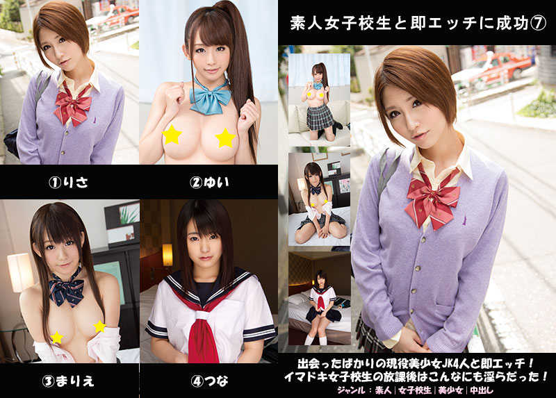 出会ったばかりの激カワJKと即SEX!!登場する女子校生はりさちゃん、ゆいちゃん、まりえちゃん、つなちゃんの4人!思春期真っ盛りの彼女たちはエッチにも興味津々!性交の味を知ってしまったイマドキJKのいやらしすぎる放課後!おかげで未成熟のJKマ●コに生中出し成功!ピチピチ十代の裸体を味わい尽くせ!