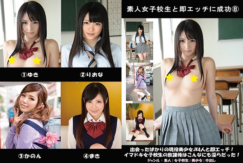 出会ったばかりの激カワ女子校生とあの手この手で即SEX!!登場する女子校生はゆきちゃん、りおなちゃん、かのんちゃん、まきちゃんの4人!思春期真っ盛りのあどけない彼女たちも、カラダの方は大人になりかけでエッチにも興味津々!性交の味を知ってしまったイマドキJKの放課後は、こんなにもいやらしかった!!おかげで未成熟のJKマ●コに生ハメ+生中出しまで成功!ピチピチ十代の裸体を頭からお尻まで味わい尽くせ!