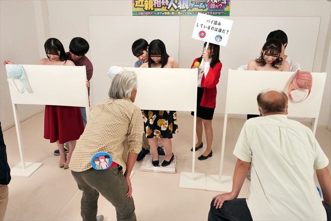 流行りの人狼ゲームをヒントにハメてるかを当てる近親相姦ゲーム!3組の母親はバスト100cmオーバーの超巨乳!母子チームVS父親のスケベな騙し合い!しゃぶっているのはフランクフルトか息子のチ○ポか?素股かガチハメか?ノリノリの母親に息子がザーメン大暴発!磨りガラス越しに推理する背徳感満載の近親相姦!