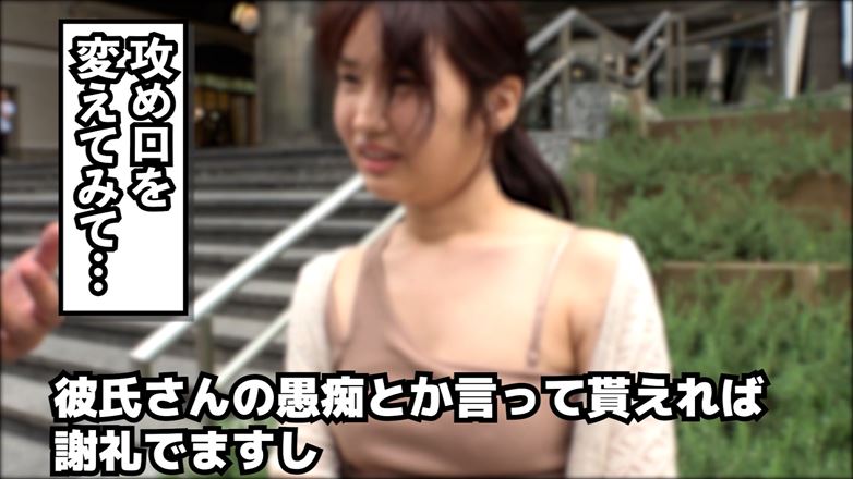 疑似中出しが蔓延するAV業界において本当の中出しを目指します。路上で喧嘩していたカップル。声を掛けてみたら泣きながらデート当日に彼氏の浮気が発覚したとの事。でしたら彼氏の愚痴を聞きますよ!と声を掛けていくことに。可愛い顔が泣き顔で台無しなのでメイクさんを呼ぶことに!みんなで色々話を聞くと明るくなってきたのでこれはいけるんじゃないか!?と思ったらやっぱり喧嘩した直後の女の子はちょろかった!キスしたり、おっぱいを触ればすぐにいい声を出し始めます!そんな女の子に「大丈夫」と言いつつ生で入れちゃいました!最初はダメダメ言っていた癖にすぐに逝きまくり!最後はたっぷりと中に出しちゃいました。その後は受け入れたのか二人きりでハメ撮りをすれば自分から求めてきたので二発目はたっぷり窒奥へ大量に中出しさせてもらいました♪