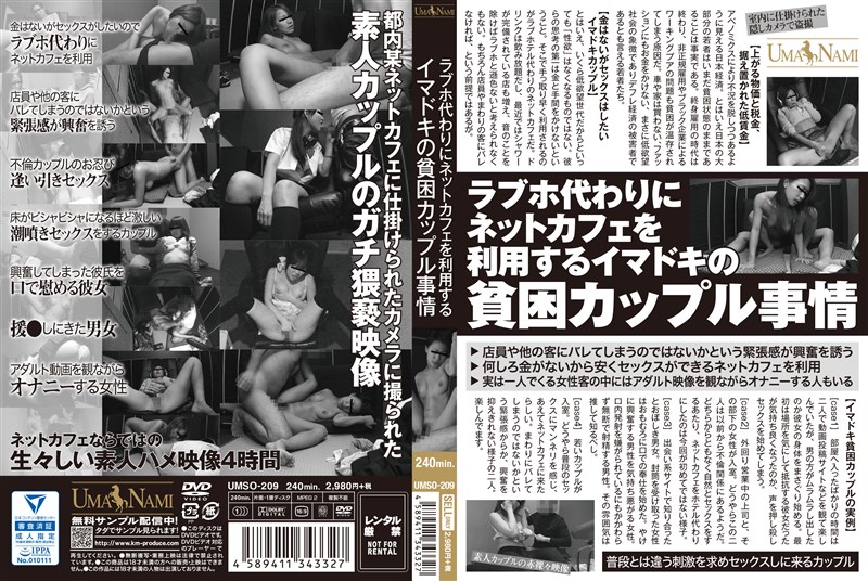 都内某ネットカフェに仕掛けられたカメラに撮られた素人カップルのガチ猥褻映像。床がビシャビシャになるほど激しい潮噴きセックスをするカップル、普段とは違う刺激を求めセックスしに来るカップル、不倫カップルのお忍び逢い引きセックス・・・。ネットカフェならではの生々しい素人ハメ映像4時間。【DVD発売日2018年9月14日】